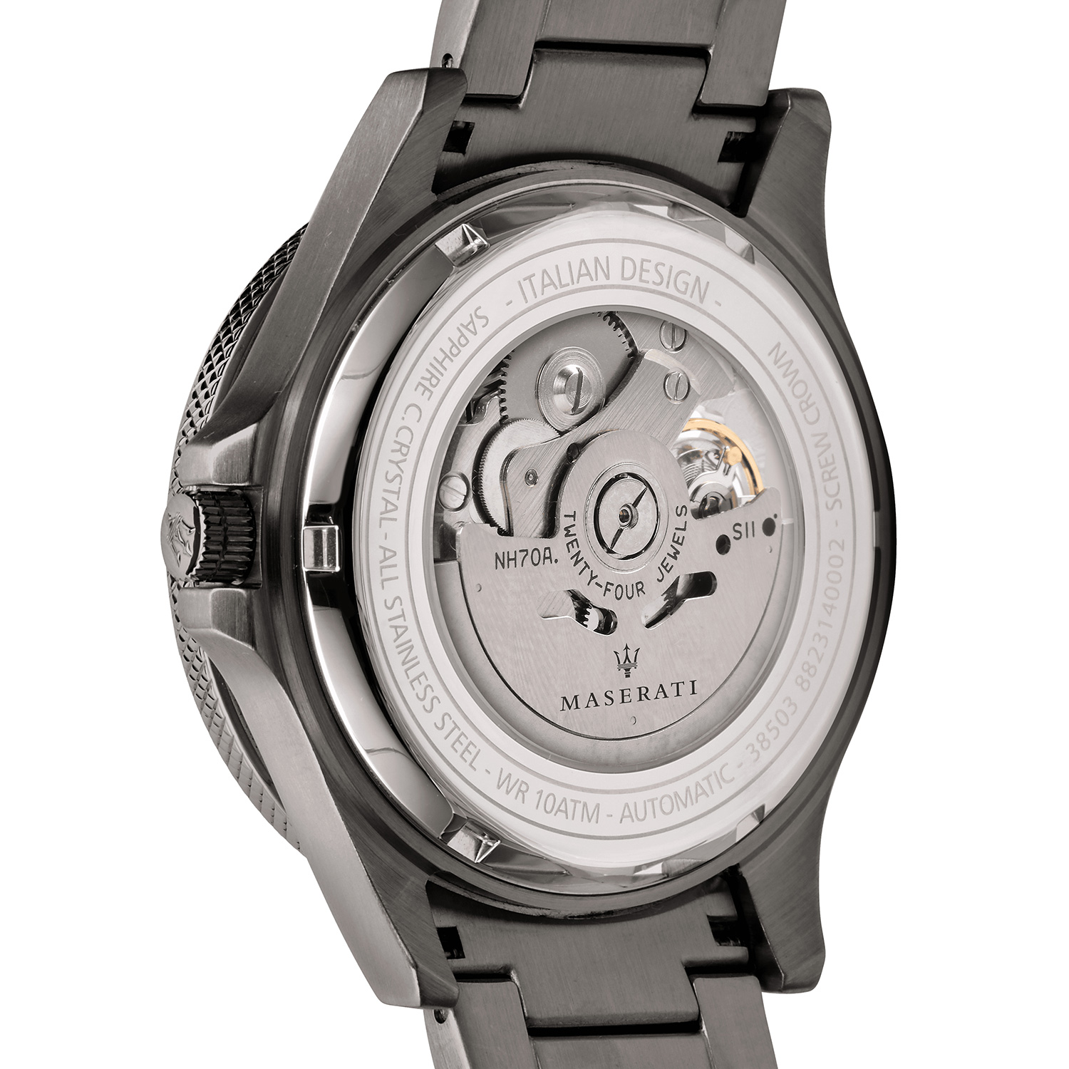 Světlý lesklý kov, technická dokonalost a nezaměnitelný trojzubec, který odlišuje vůz Maserati, jsou také na každém ze stejnojmenných hodinek a doplňků. Maserati navrhuje a vyrábí hodinky pro muže a ženy, které vyvolávají pozornost. Hodinky a doplňky zprostředkovávají motoristické znalosti, vizi a nadšení autentické značky. Tyto originální, elegantní hodinky, které přidávají styl každému, kdo je nosí, zachycují nejcharakterističtější prvky historie Maserati.